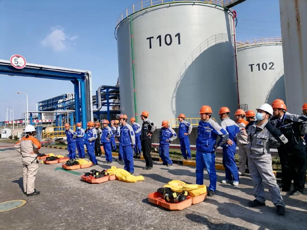 筑安全防線,為生命護(hù)航!_江陰華西化工碼頭有限公司開展了防化服及正壓式空氣呼吸器穿戴技能競(jìng)賽。為進(jìn)一步提升全體員工的安全防范意識(shí)和突發(fā)事件應(yīng)急處置實(shí)戰(zhàn)技能,增強(qiáng)班組的凝聚力和集體榮譽(yù)感,確保各項(xiàng)工作安全、平穩(wěn)、有序開展,11月30日下午,江陰華西化工碼頭有限公司開展了防化服及正壓式空氣呼吸器穿戴技···2021-12-02